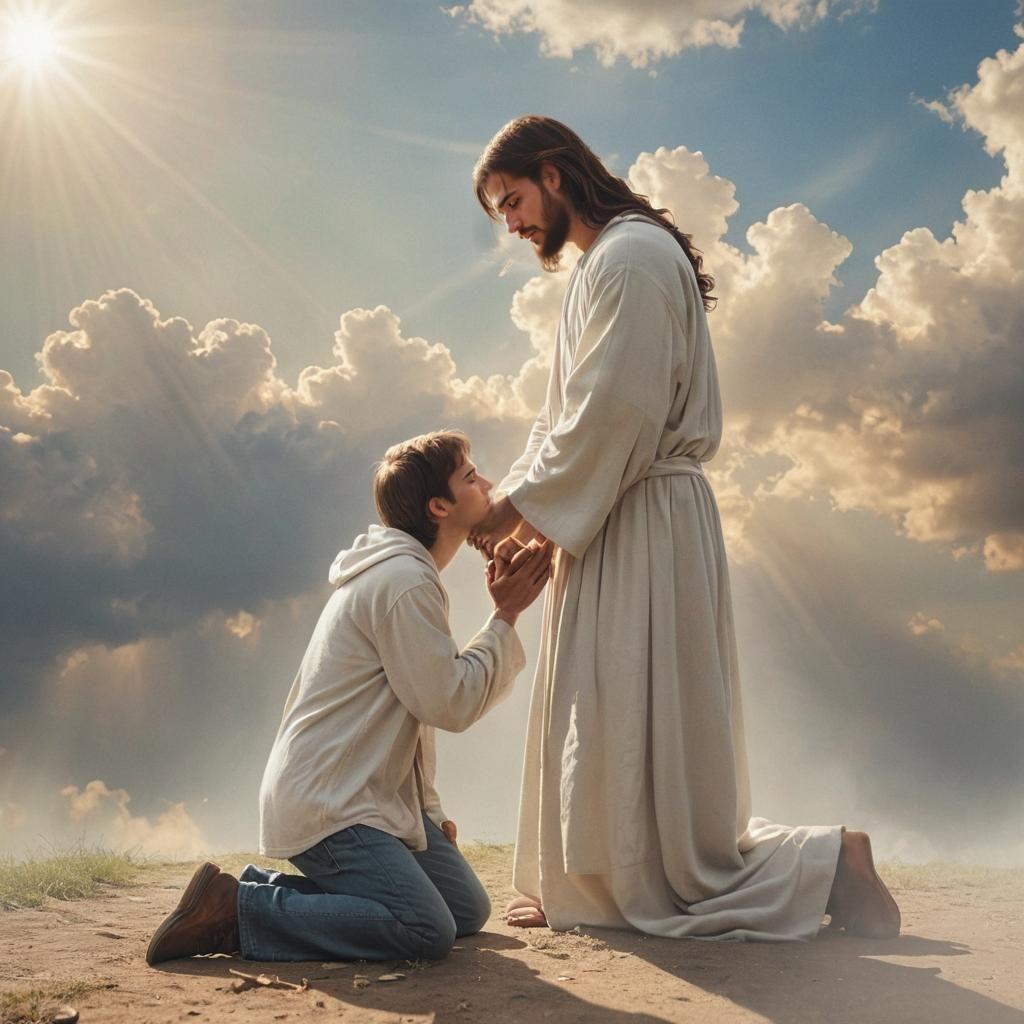 Children came to Jesus and He blessed them. Do we demonstrate the childlike faith that trusts that He is good and that He wants us to come to Him? This image is of Jesus praying and the boy comes closer to see what He is all about.