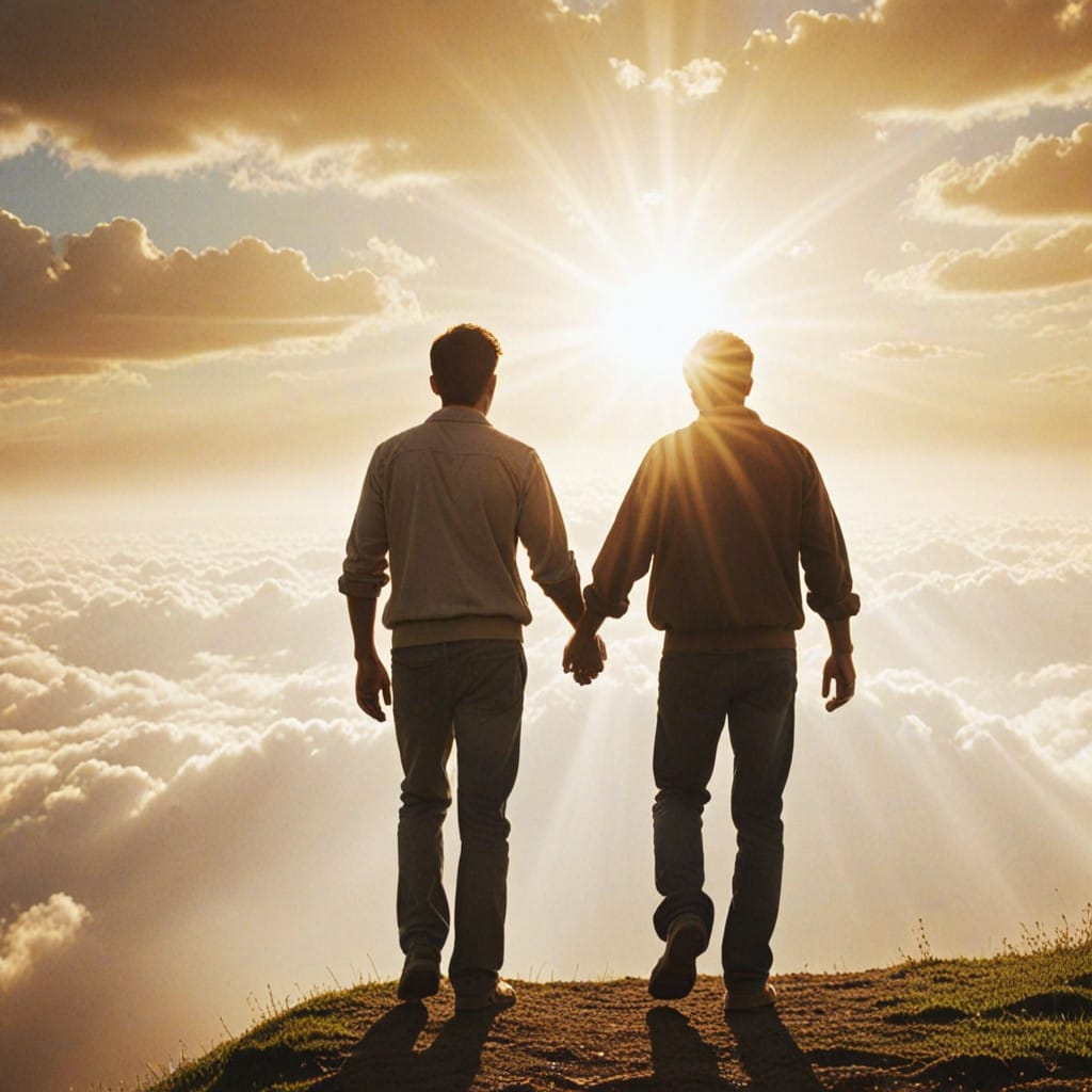 This image represents God’s truth in a person leading another follower to walk in the light. The Light represents the Gospel Good News.
