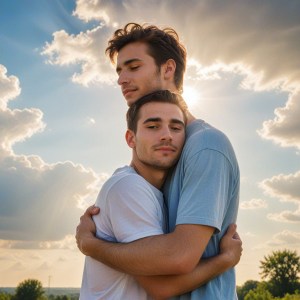 Two friends embrace as they consider the temporary nature of their present difficulties in life.