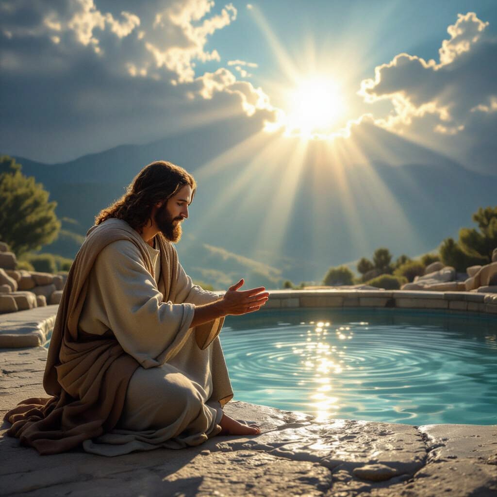 The man at the pool has a different idea on healing! He believes that an angel comes and stirs the water and whoever is the first in will be healed. There are numerous others present waiting for the water to be stirred.