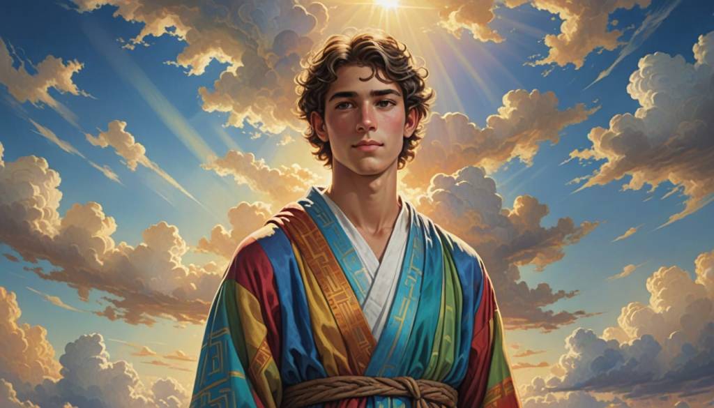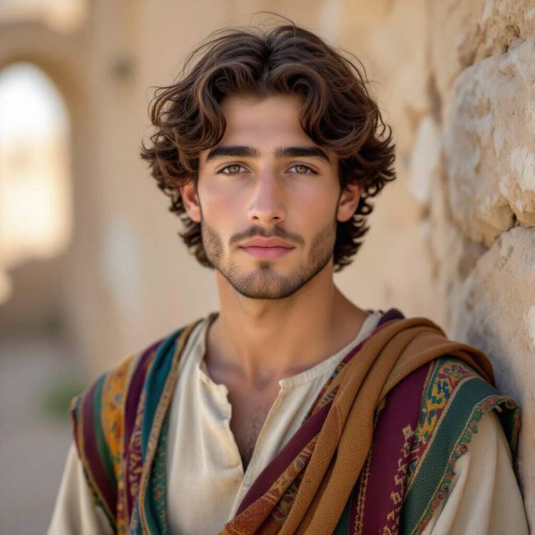 A.I creation of Joseph with his multi color tunic prior to be sold into slavery.