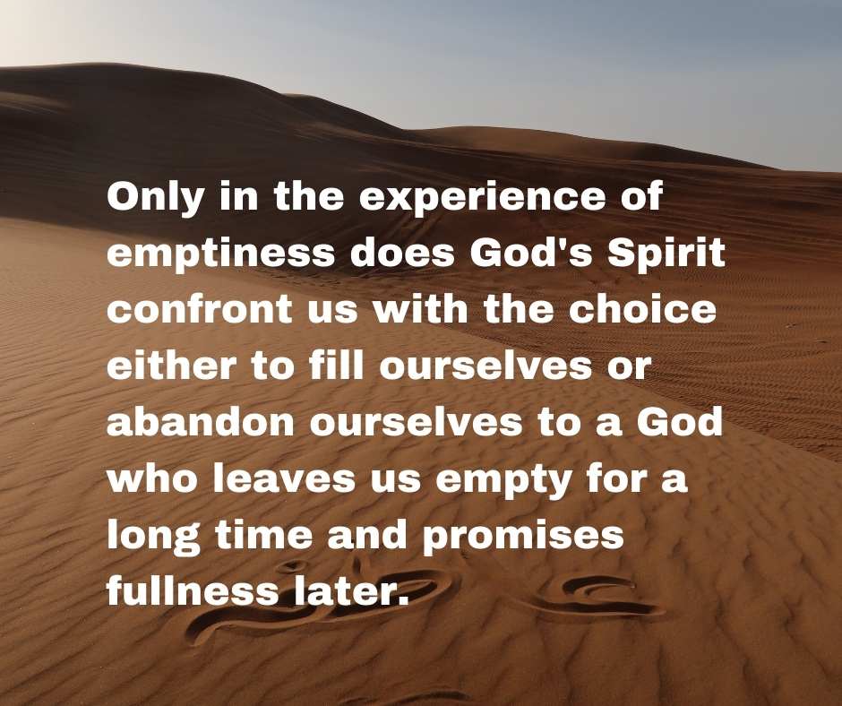 2. It is an opportunity to trust Him with our experience of emptiness and fear, to trust Him to forgive our resentment over bad things that happen and our determination to feel good with or without Him. . .