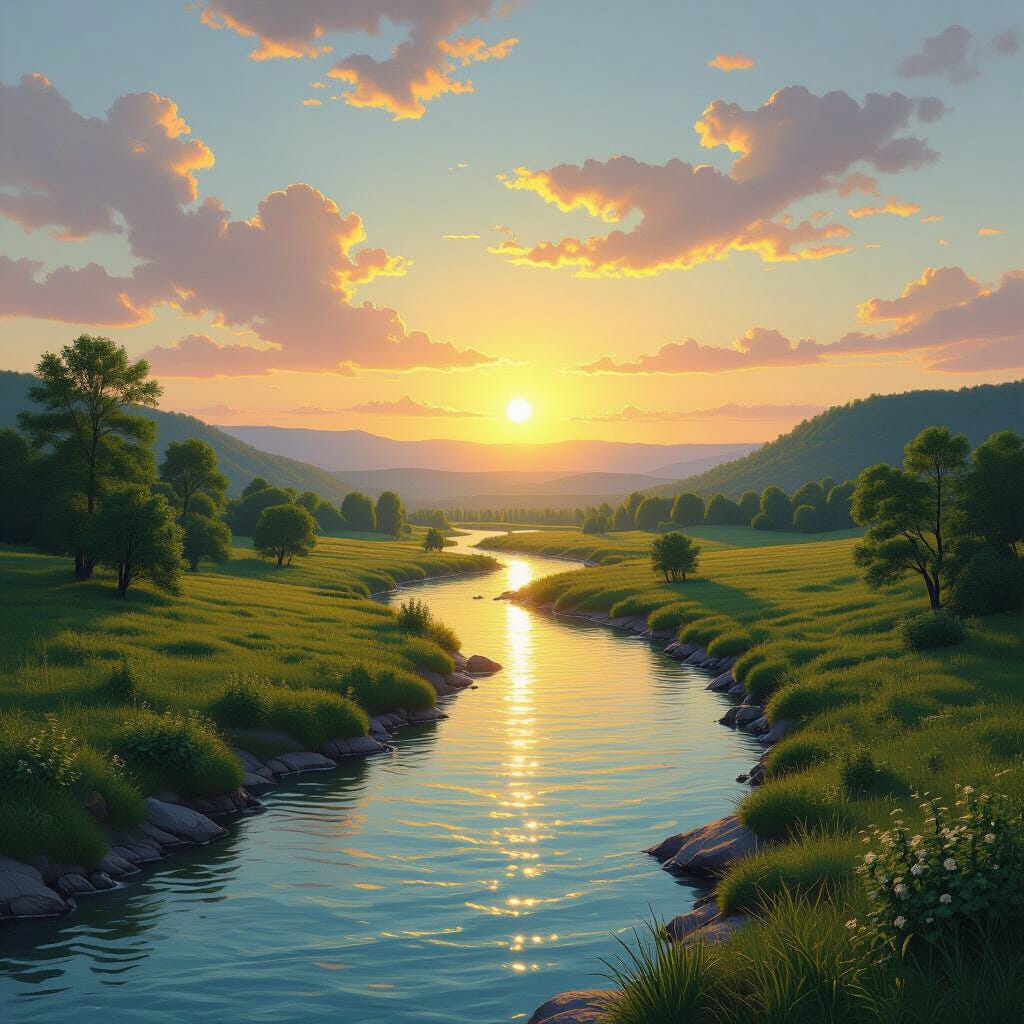 Featured Image: Sun shines on field illuminating the landscape with light. Stock image Canva Pro. Other images in this post created using NightCafe studio. Link to post #1