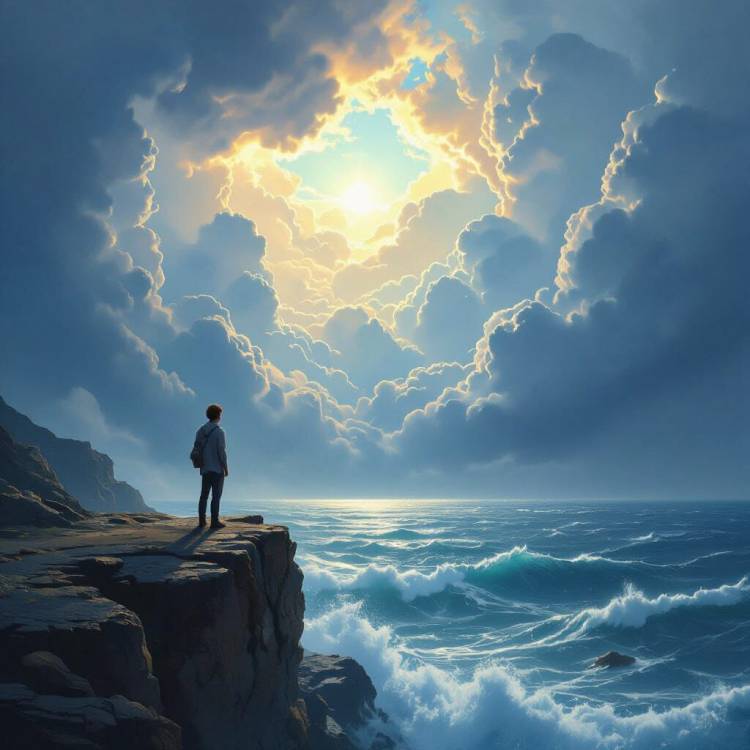Light from above shine down through the storm clouds of the stormy seas.
