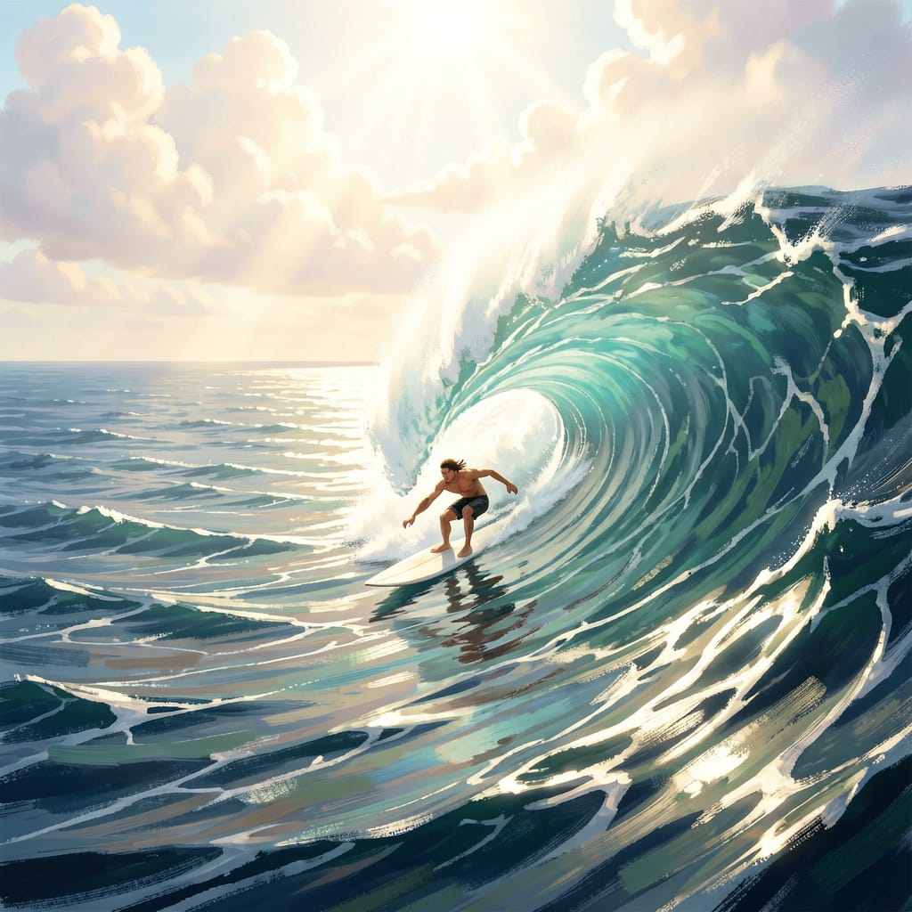 The disciplined, experienced surfer rides the waves that nature brings forth. The important thing is to stay on the board and above the waves that come crashing.